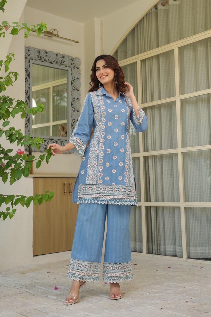 Fiza – Powder Blue Embroidered Cotton Co-ord Set