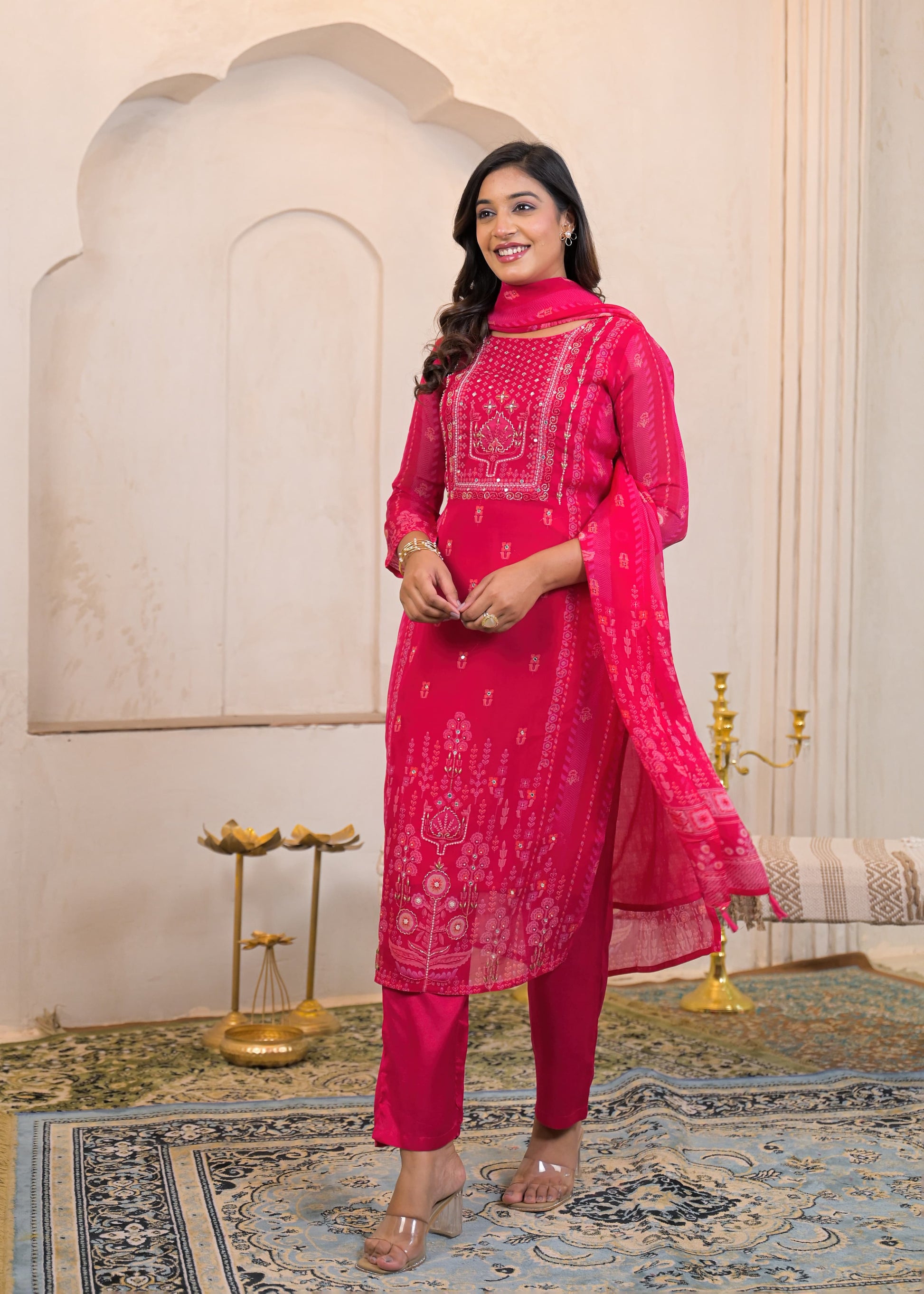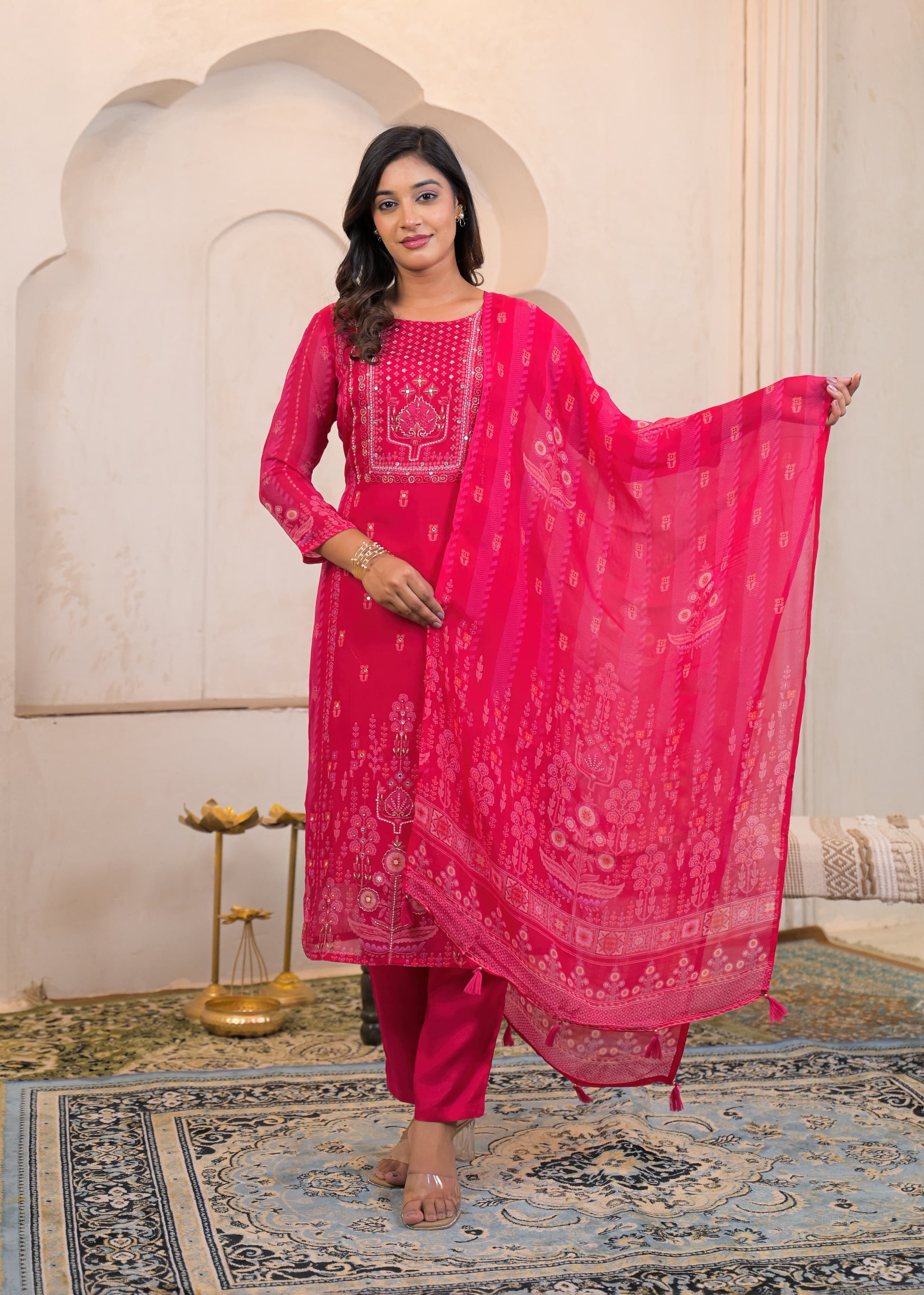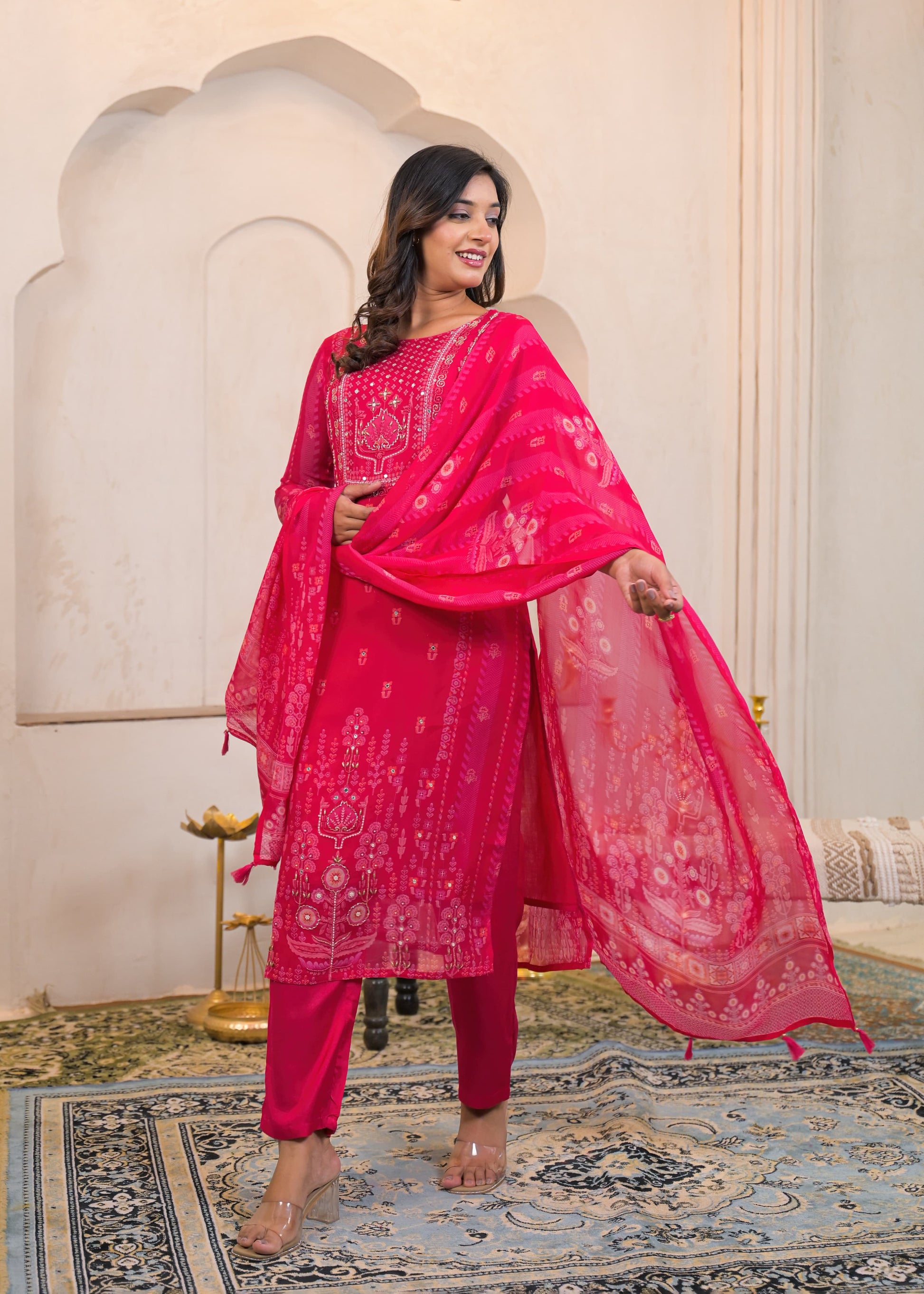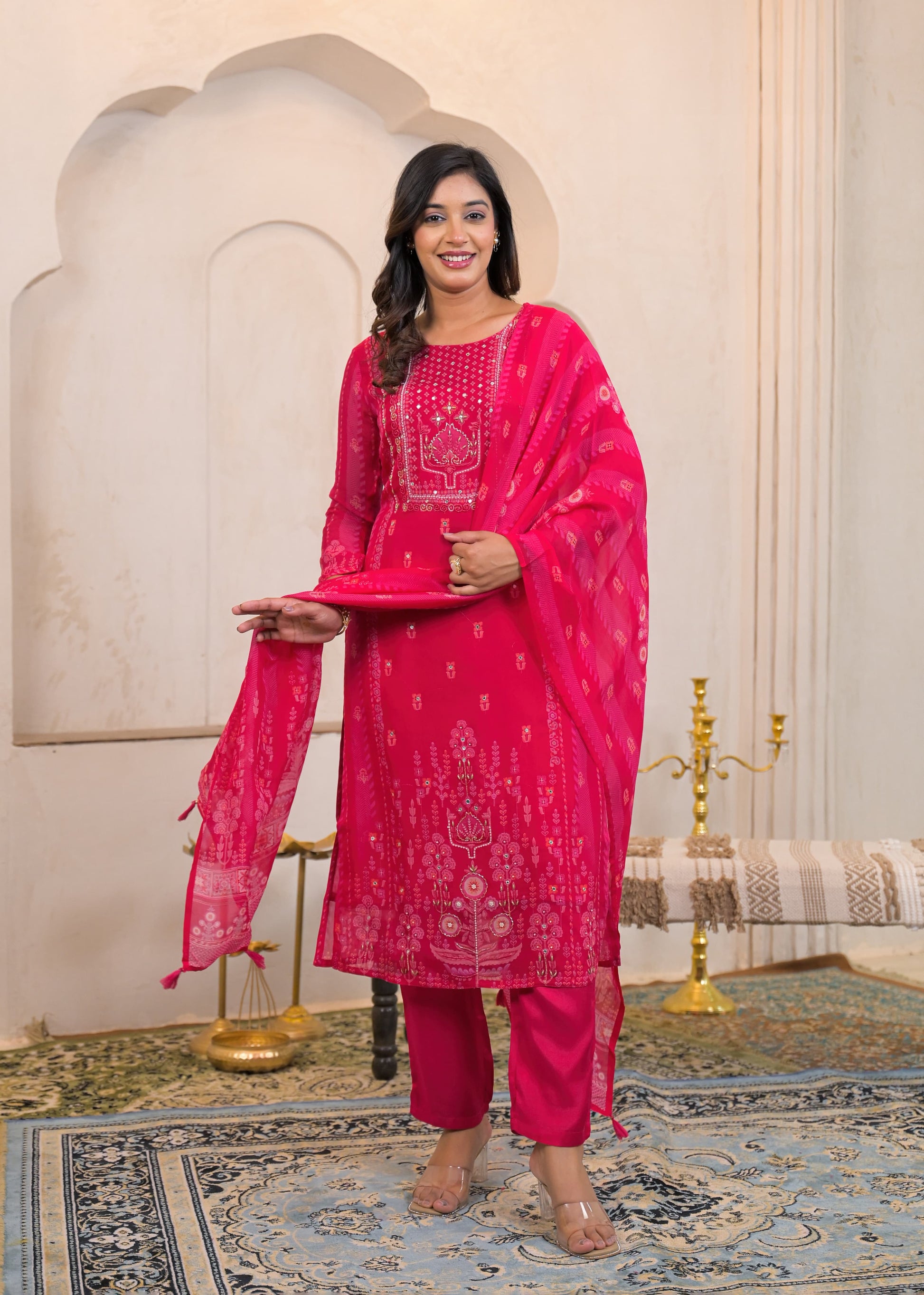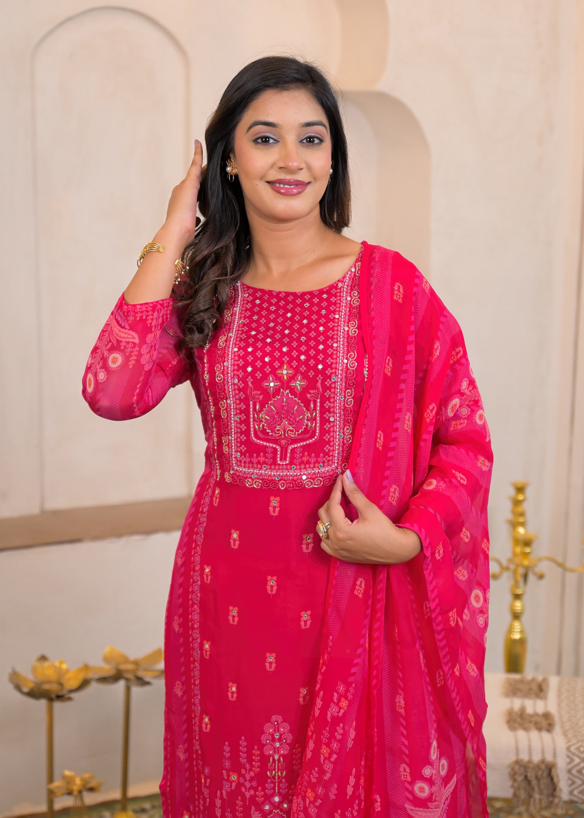 Perfectly suited for Karwa Chauth rituals, wedding festivities, festive dinners, and cultural gatherings, this embroidered pink suit set with organza dupatta is more than an outfit — it is an arrival, a mood, a memory waiting to be made.