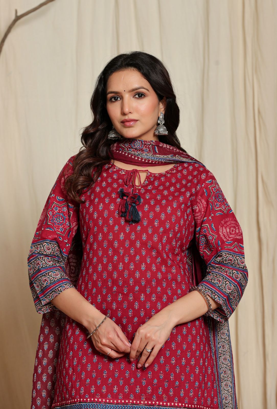 Itr-e-Jaam - Maroon Cotton Straight Suit Set