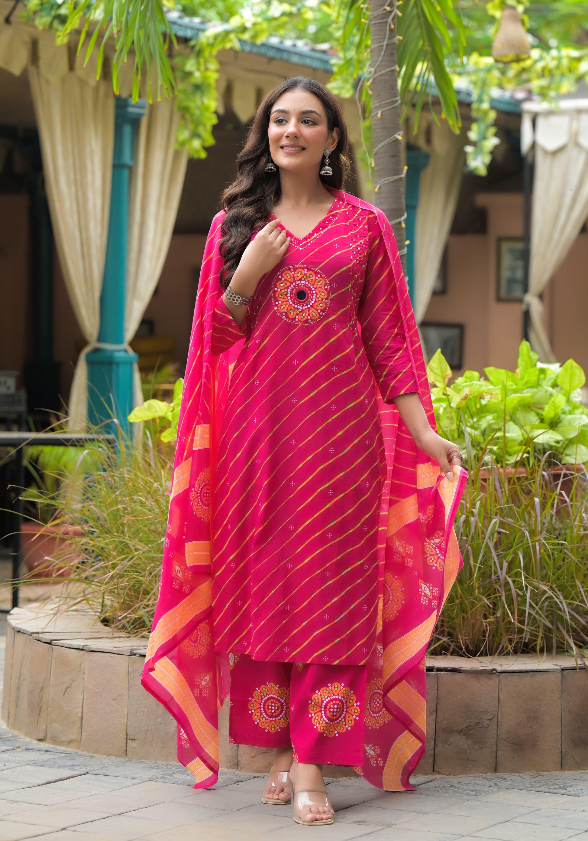 Samaa - Pink Leheriya Mirror Work Cotton Suit Set