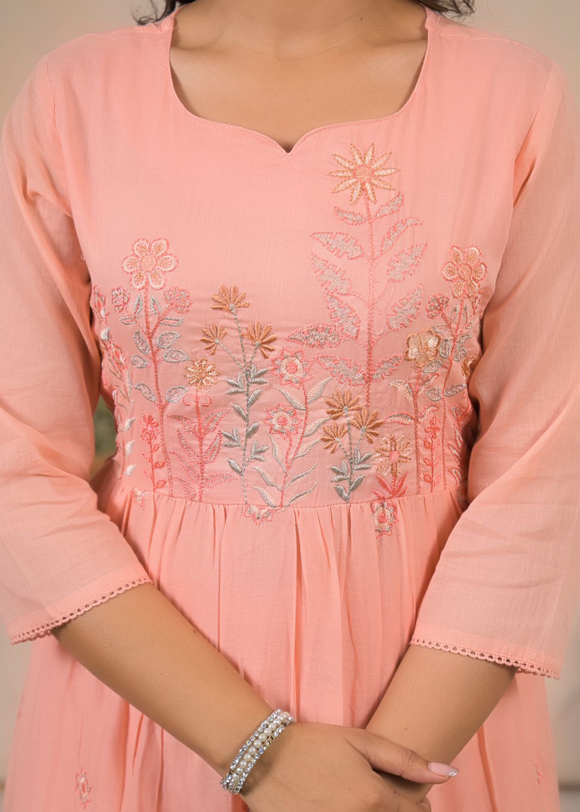 Zoya - Peach Floral Embroidered Cotton Anarkali